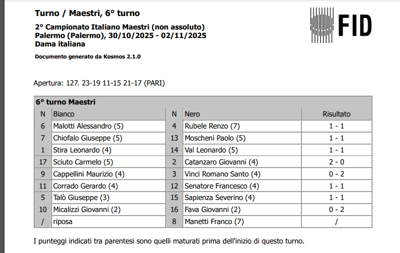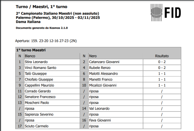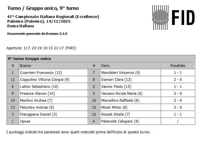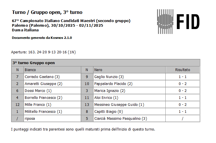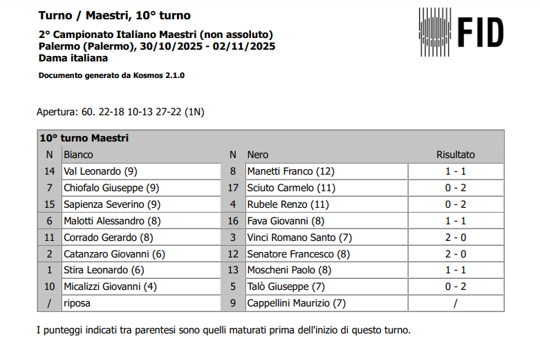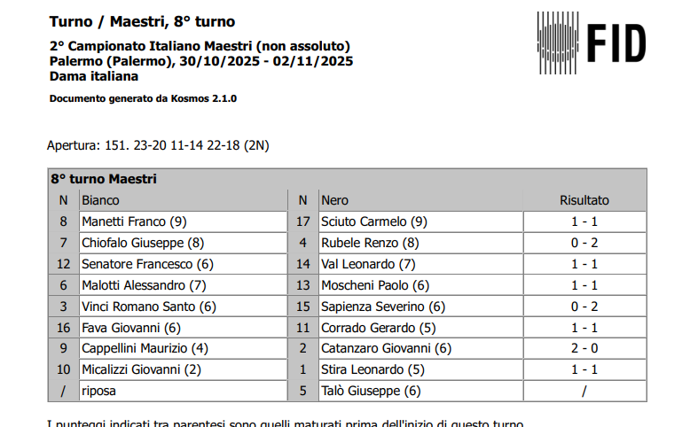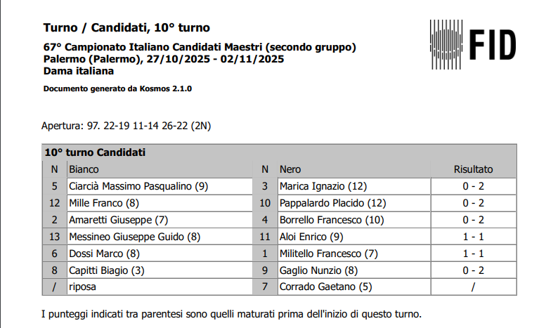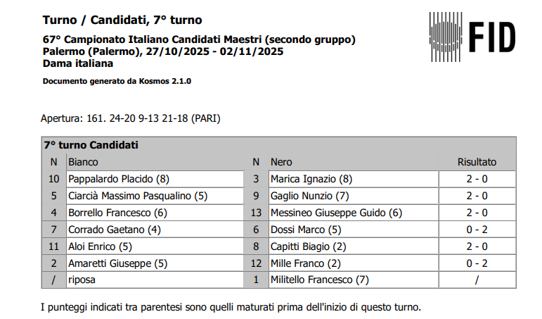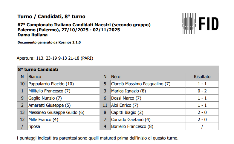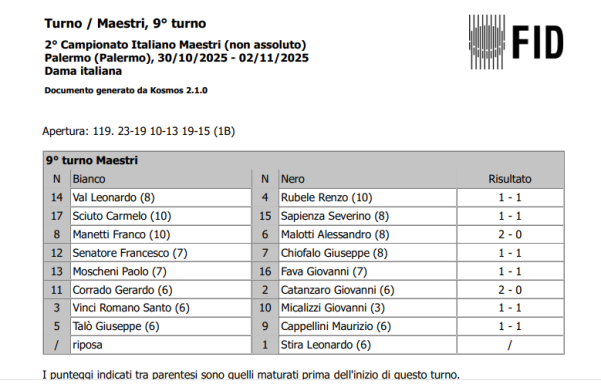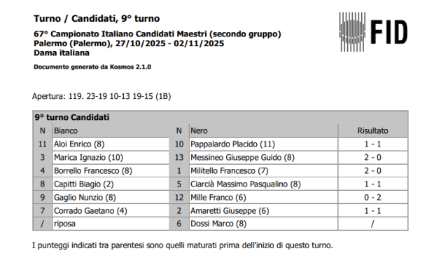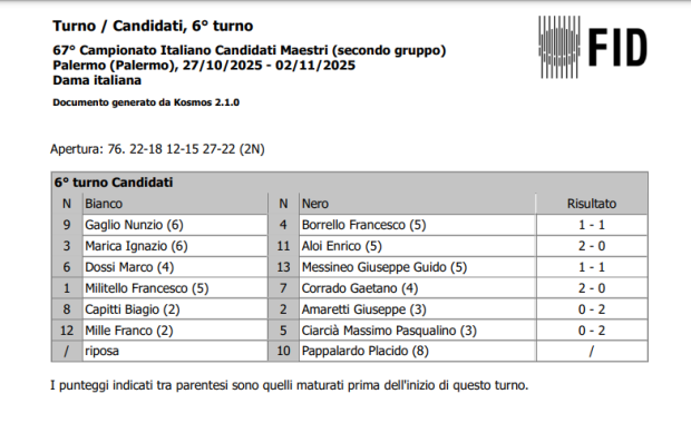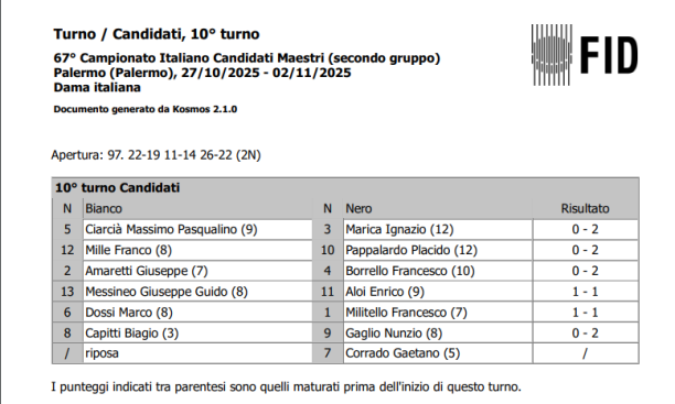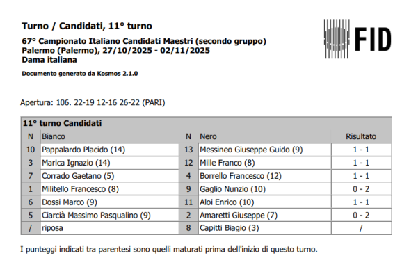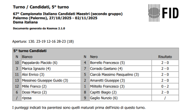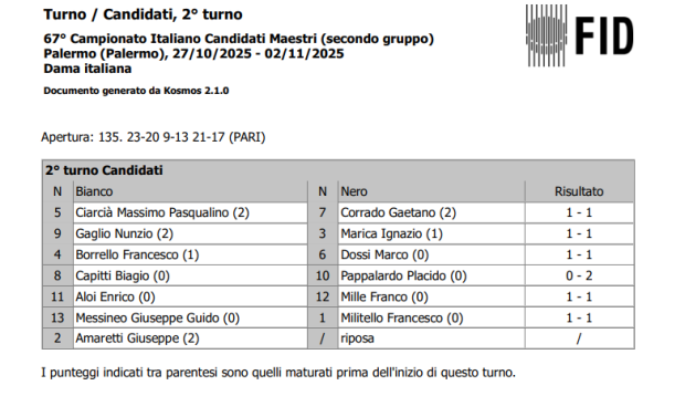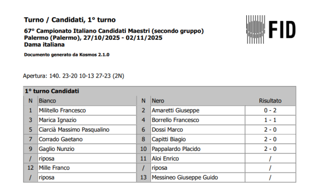 67°campionato categoria Candidati Maestri, Ignazio Marica è il nuovo campione italiano!