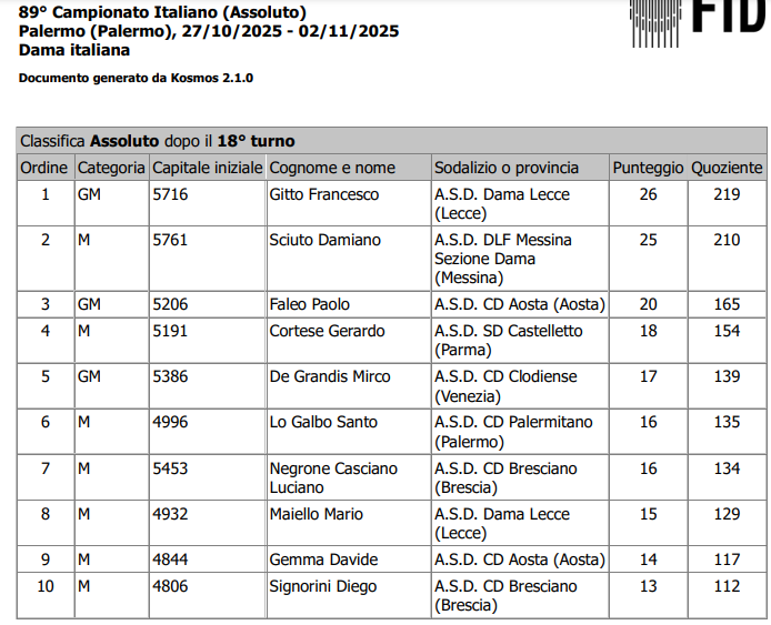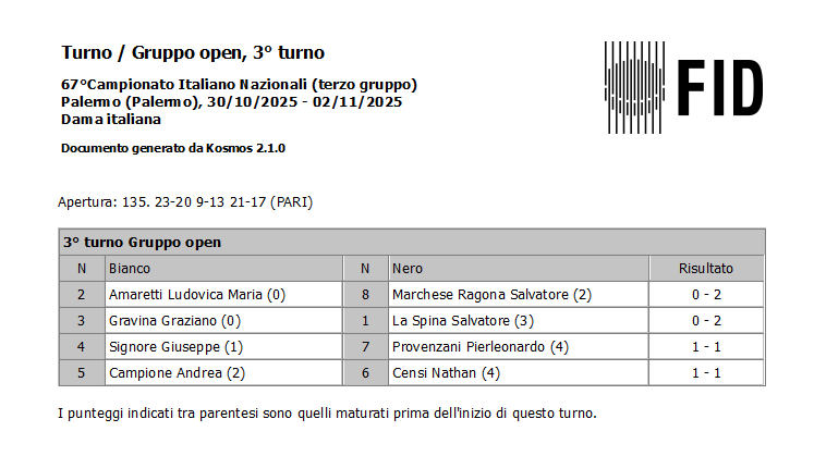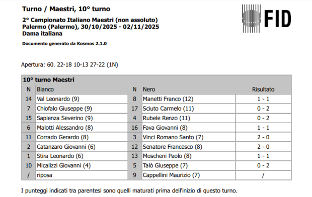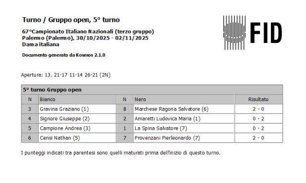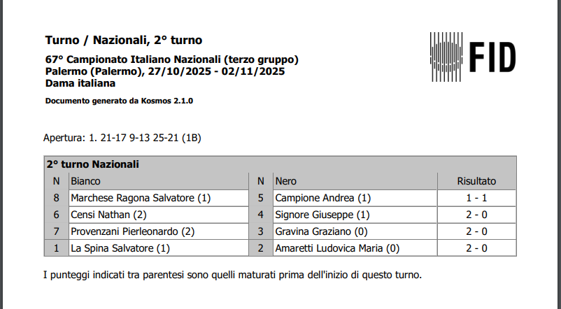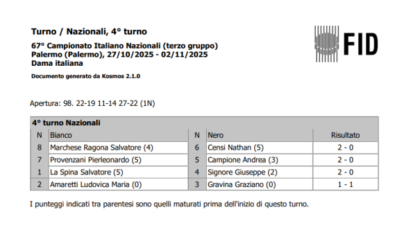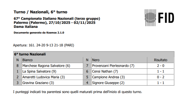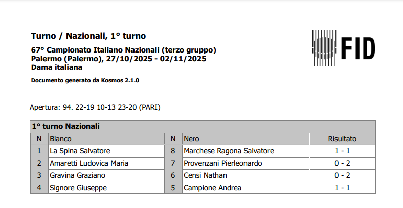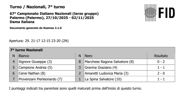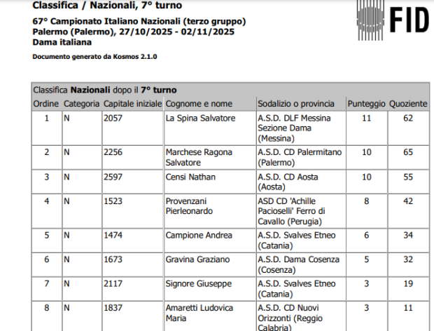 67°campionato categoria Nazionali, Salvatore La Spina è il nuovo campione italiano!