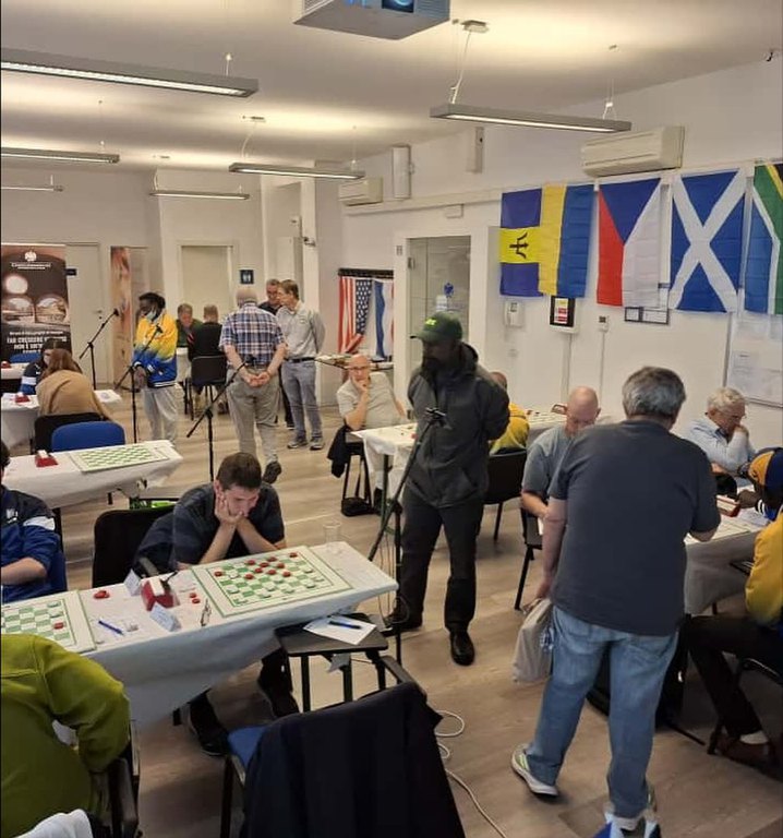 Il match per l’assegnazione del titolo mondiale di Dama Inglese (3-move) si è disputato tra Sergio Scarpetta (Campione in carica) e Alex Moiseyev.