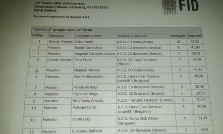 Gara di Dama Italiana valevole per la classifica elo rubele;